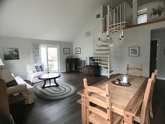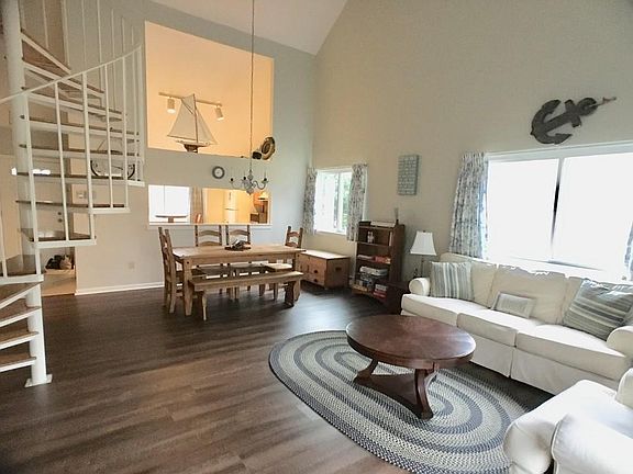 This Ocean Edge Resort Lofted Patio home is a free standing cottage that is being sold fully furnished and ready to use this summer. This lovely condominium features cathedral ceilings, a private wooded patio and central AC. The owners have recently installed laminate flooring through the unit and updated the windows and slider which opens out to the back patio. Located on a peaceful cul-de-sac and a short walk to the Ocean Edge fitness center and pool. Easy to show.