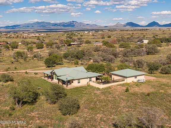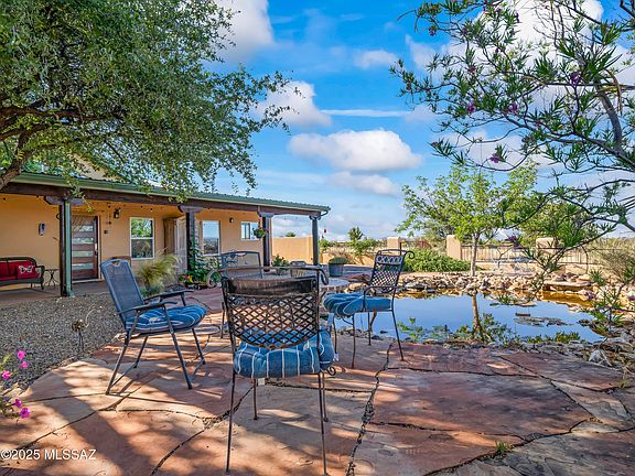 Located in highly sought after location, Los Encinos, Sonoita-this scenic & fully chain link fenced property is loaded w/variety of native vegetation & Oaks. Enter into a courtyard w/custom ornamental iron gates & enjoy a soothing fishpond, several patios & numerous shade trees! Quality shines in a split floor plan featuring slate floors in Great room w/Full frontal Views of Mt Wrightson custom built-in cherrywood cabinets in LR, Granite kitchen counters, island & SS appliances. Home Office & 3 BDRMS w/cherry wood floors, 2 spacious spa style bathrooms w/Egyptian sandstone flooring, walk-in showers & Grohe fixtures. Add'l Luxury features incl built-in propane fireplace, Bose Surround AV system, oversized garage & Panoramic views, this property is a magical setting, built by local custom