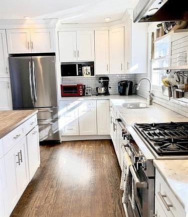 Over 3/4 acre of wooded property! New Chef designed Kitchen! Marble, SS...Open Floor Plan you will love with updated living room! Hardwood Floors, Beautiful Baths, refinished bedroom, Sliders to deck and brand new white privacy fence, Oil tank above ground...Woodstove... Forced Heat & New Central Air, , New Paved driveway. Don't miss out!