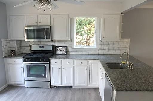 Renovated 4 bed Colonial with 2 Car Garage. This home has it all. First floor features GRANITE/ STAINLESS Kitchen with breakfast bar open to dining area with hardwood floors. Front to back living room with HARDWOODS, Large 4th bedroom with FIREPLACE, and brand new full bath. 2nd floor features 3 beds all with hardwoods and an additional oversized full bath. Lower level is finished with some additional storage space. Gas Heat and Range. Updates include kitchen, bathrooms, vinyl siding, deck, garage doors, first floor windows, septic, deck, 26x16 stamped concrete patio, carpet, paint, refinished hardwood floors, and much more. First Showings at Open House Saturday 9/30 2:00-3:30.