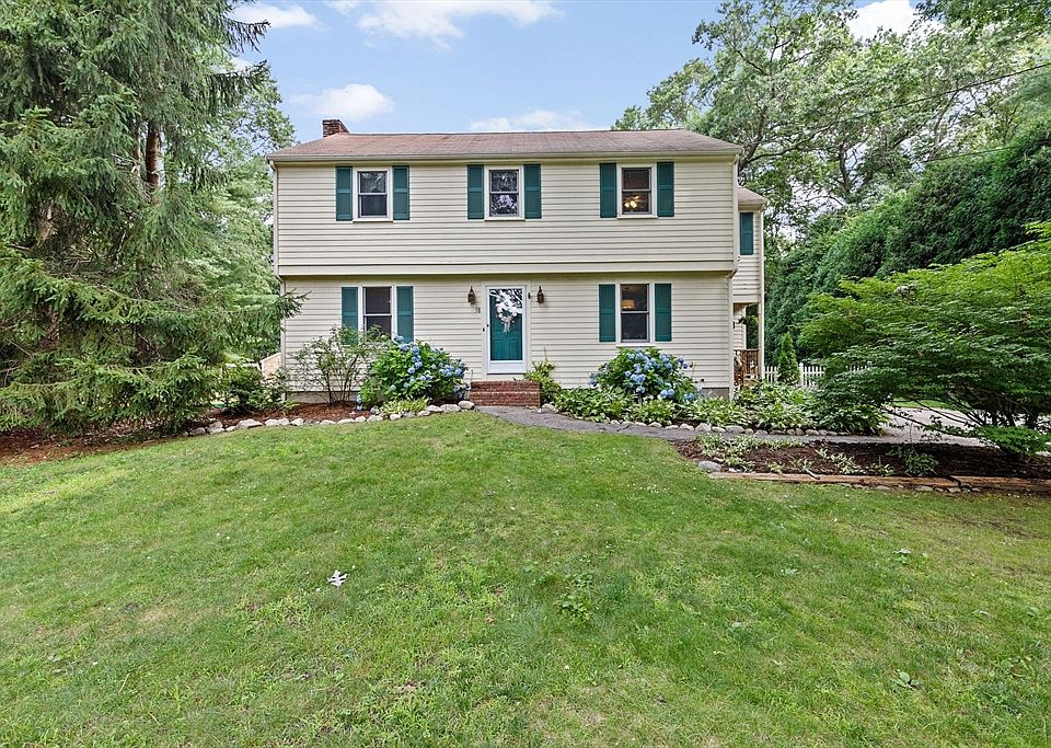Charming Colonial on a Private Lot Near Conservation Land. Welcome to this inviting Colonial set on a private 0.7-acre lot in a sought-after neighborhood. This 4-bedroom, 2.5-bath home offers timeless charm and functionality with hardwood floors, a spacious kitchen, a vaulted-ceiling living room, and a cozy den featuring a wood-burning fireplace. Enjoy indoor-outdoor living with a screened-in porch perfect for entertaining, a generous deck, and an in-ground Gunite pool for summer fun. Additional highlights include central air conditioning, a finished basement providing extra living space. While the home is move-in ready, it offers wonderful potential for cosmetic updates over time—making it a great opportunity to personalize and build equity. Conveniently located near the commuter rail and Route 3, with easy access to Boston and surrounding areas, this home truly has it all. Pictures to follow. Private Showings start Saturday July 12th afternoon.