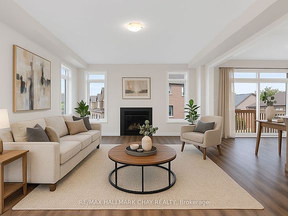 This beautiful stone & brick, Geranium built, nearly new 2 storey home has everything your family is looking for! Located in the highly desirable Midhurst Valley development this home sits on a premium corner lot and is located directly across from a newly constructed park for the kids. Inside you will find a spacious main floor with an open concept layout that is highlighted by 9 foot ceilings and oversized windows bringing in a ton of natural light and providing views of Vespra Hills golf course from your living room! The oversized living room has a gas fireplace and room for the whole family. Directly adjacent the living room is the open concept kitchen/dining space that features extended height cabinetry, quartz counters with large breakfast island, and stainless steel appliances. The main floor is rounded out by a 2pc bath and large foyer. Upstairs are 3 terrific size bedrooms including the giant primary with coffered ceiling, walk-in closet, and stunning 5 piece ensuite. An additional 4 piece bath services the other 2 bedrooms and a large second floor laundry room provides the utmost convenience. The unspoiled basement is a walkout and has large windows due to the grade, which provides a ton of options for multi-generational living or income potential with a second suite. What sets this one apart in the neighbourhood is the yard space this corner lot provides - YES, YOU HEARD CORRECTLY, THIS ONE HAS YARD SPACE! Fenced on 2 sides already and easily closed on the third the corner lot provides for additional yard space that is certainly a premium. This neighbourhood is ideally situated in a fantastic school district, just moments to all daily conveniences in the North end of Barrie, and is surrounded by outdoor recreation (Snow Valley Ski Resort, Vespra Hills Golf Course, Simcoe County forest for hiking/biking).