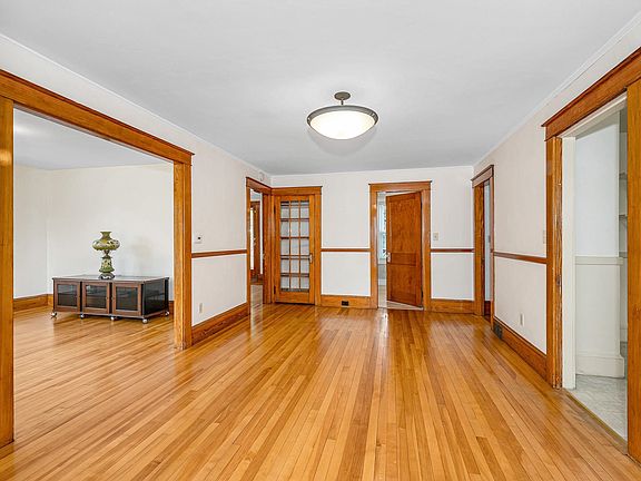 Inner-city bungalow-style Cape on large lot conveniently located near downtown Nashua, Southern NH Medical Center and Sullivan Park. Well maintained 1940s classical home featuring natural woodwork, hardwood floors, entryways, built-in showcase from ceiling to floor. The 1st-floor flows from efficient kitchen to large dining room at center of the first floor. Off the dining room is a relaxing front sunporch, living room, full bath & 2 bedrooms, 1 which leads to 16'x22' deck at the back of the house providing a place for BBQing and relaxing outside in the spacious completely fenced in back yard. The second floor is completely accessible with "suite" of three rooms which leaves room to your imagination for use as Home Office, crafting, additional bedroom. Unfinished full basement with a cement floor. Washer/dryer hookups available in basement with a classic stainless steel sink and side counter. Dehumidifier keeps the basement dry, no moldy/musty smell. One car garage, w/room for snow blower, lawnmower, motorcycle, etc. The property is serviced by public water, sewer and natural gas for heat. (A natural gas connection is available in the kitchen if you prefer to have a kitchen stove that runs on natural gas.) Improvements made by current owner include new roof/house, 2023, & new roof/garage, 2021, new windows throughout, 2019-20, new faucets in kitchen, bath & basement, 2023, hot water tank & toilet, 2018. Quick close possible. Easy to Show. Open House Sat 4/26 11 to1.