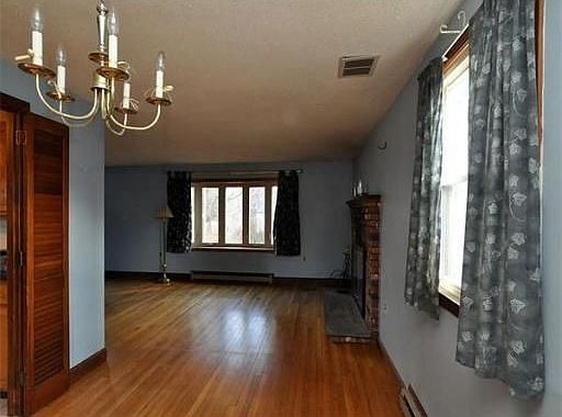 Convieniently located oversized cape with large open rooms in a neighborhood setting. Updated kitchen w/ Corian counter tops, oak cabinets and two lovely updated full baths. First floor is all hardwood with fireplace in lliving room. Basement/bonus room carpted with fireplace. Flat fenced yard. Move-in condition.