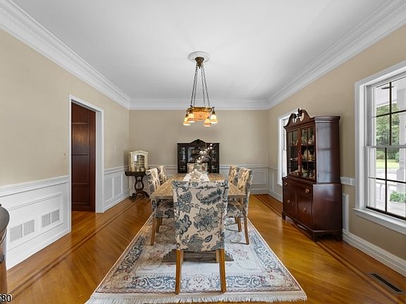 Best value in town with prime highway access to NYC! Tucked away on a private road in Morristown, this 6-bedroom, 3.5-bath Colonial offers both space and sophistication. The thoughtfully designed layout features a first-floor primary suite and an additional 1.5 baths on the main level, with five more bedrooms and 2 bathrooms upstairs. Sun-filled living spaces flow seamlessly, including a spacious family room and formal dining area. The heart of the home is complemented by a finished basement with a built-in bar perfect for entertaining. Above the oversized 3-car garage, a versatile bonus room serves as an ideal playroom, home office, or studio. Outside, mature landscaping surrounds the home, creating a peaceful retreat while still being minutes from Morristown's vibrant downtown, shops, dining, and commuter access. This property blends privacy, function, and timeless style for an exceptional living experience.