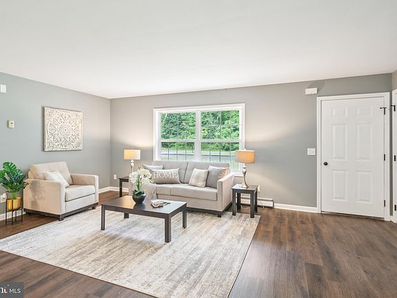 Fantastic Pilesgrove opportunity! Wonderful updated 3 bed, 2 full bath rancher on a beautiful 4.7 acre lot! Lovely curb appeal with maintenance free yellow vinyl siding, black shutters and charming front porch. As you step inside, notice the spacious and open floor plan with waterproof vinyl plank flooring that flows throughout the main level. Lovely living/dining room combination plus beautiful kitchen with an abundance of cabinetry, quartz countertops, subway tile backsplash, a breakfast nook, large stainless sink with black goose neck faucet, a new 6 burner gas range plus pantry closet. Laundry area conveniently located on the main level off the kitchen. Primary bedroom with very wide double closet connects to the updated primary full bath. Second and third bedrooms with large single closets and easy access to the updated hall bath. Additional features include fresh paint throughout main level, 6 panel doors, entry coat closet, pull down attic, huge 50 x 24 walk out basement with 9' ceilings, front storm door, doorbell and new interior & exterior lighting. Two car detached garage and long driveway for plenty of parking. Wonderful private, serene setting located just minutes from Historic Woodstown. Easy to show!