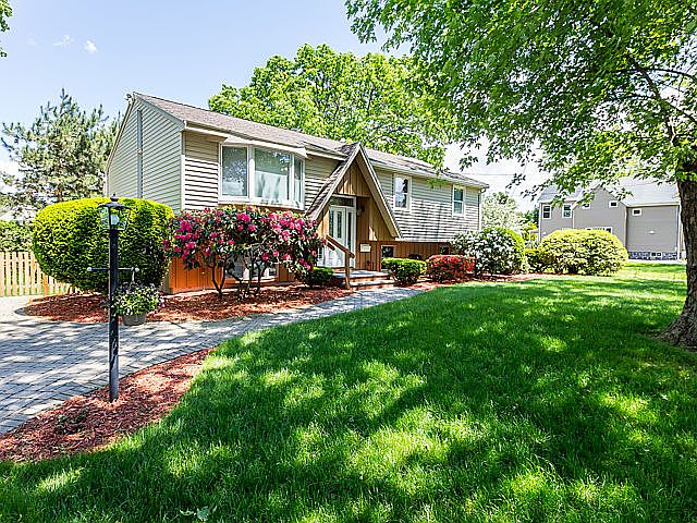 A classy, meticulously maintained split level raised ranch with custom renovations tucked away right off Rte.1. This four bedroom with 2 living rooms, 2 full renovated baths and great storage space is in move in condition. A modern wood staircase entrance leads you to a light-filled, open floor plan on the first floor with hardwood floors throughout and cathedral ceilings in the common living areas. A skylight graces the granite top kitchen with island. Enjoy your meals on a beautiful large deck accessible directly from the dining room through the sliders. The multi-level private backyard with its concrete patio is perfect for entertaining. The garden enthusiast will enjoy the full sprinkler system and side garden area. Expanded four car driveway. Fantastic location just minutes to Rte 1 and near all shopping needs, schools and interchanges. A must see!