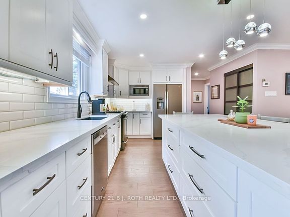 Imagine coming home to a place that feels built around the rhythm of family life. Warm mornings, laughter in the kitchen, and quiet evenings on the new deck. This beautifully updated Bradford home blends comfort, character, and thoughtful design. Step inside and you'll find a bright, open main floor where everything feels new and inviting. The kitchen, bathroom, and floors were all updated in 2020, giving the home a fresh and modern feel. At the heart of the home is the custom kitchen with a large quartz island. It's the kind of space where weekend brunches linger and conversations flow easily. The kitchen opens directly to your private backyard, surrounded by mature trees. The gentle sound of the running pond feature adds a calming backdrop, while the irrigation system keeps the yard low-maintenance and green. The fully finished walk-out basement offers an in-law suite, perfect for extended family, guests, or a quiet workspace. Every detail has been cared for, from the garage door added in 2022, to the new eavestroughs and updated electrical panel installed in 2020. These upgrades provide both peace of mind and lasting value. Located in the heart of Bradford, this home sits just steps from local shops, parks, and everyday conveniences. Close enough to walk, yet peaceful enough to feel like your own private retreat. This isn't just a house. It's where your next chapter begins, filled with comfort, connection, and moments that truly feel like home.