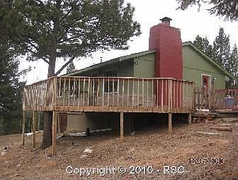 Welcome to your mountain getaway! Updated kitchen with pine cabinets and newer black appliances. Large living room with wood burning fireplace and skylights. Separate bath has been remodeled with neutral tile and fixtures. This home has been well maintained and nicely updated. New one-car garage, newer windows, new 2011 roof, and septic installed in 2000. Lot is a mix of pine and aspen and boasts a spectacular Pikes Peak view. Large deck to enjoy the mountain views and wildlife.