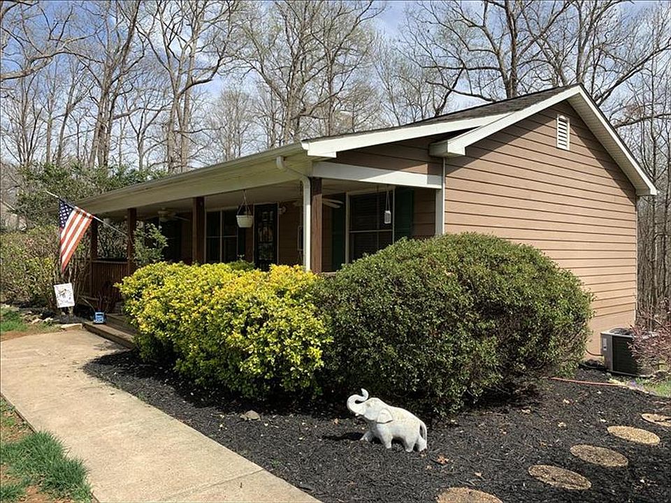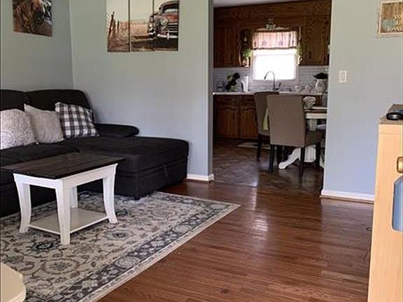 Well-cared for 3 bedroom ranch style home on 1.8 acres. Living room is open to eat-in kitchen. Master bedroom with attached half bathroom and walk-in closet. Full walkout basement with large wood-stove. Wraparound covered porch/deck. Heat pump 1 year old and newer hot water heater. Awesome 600 sqft detached 2-car garage with workshop area.