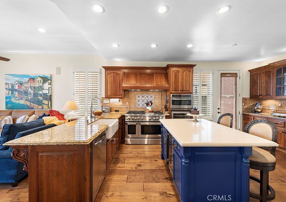 Tucked within the rolling hills of Coto de Caza, 58 Downfield is a timeless 5-bedroom, 4-bath executive home with approximately 3,455 sq. ft. of thoughtfully designed living space—where every room tells a story of craftsmanship, comfort, and California elegance. From the moment you enter, custom woodwork, wide-plank flooring, and sunlit spaces invite you into a home that balances warmth and sophistication. The chef’s kitchen, outfitted with GE Monogram appliances, quartz countertops, a walk-in pantry, beverage cooler, and wine fridge, flows effortlessly into the heart of the home, where gatherings unfold beside a distinctive two-sided see-through fireplace connecting the formal dining room and family room. The main floor features a versatile bedroom currently styled as a private home office—perfect for today’s flexible lifestyle. Upstairs, a spacious bonus room with built-ins offers additional sleeping space or flex use, while the detached casita provides a fifth private bedroom option—ideal for guests, hobbies, or multigenerational living. The primary bedroom suite serves as a tranquil retreat with an updated en-suite bath, and the beautifully landscaped backyard beckons with a stylish pool, spa, firepit, built-in BBQ, mature lemon trees, and a tree-lined lot for privacy. Additional upgrades include a generous laundry room with sink, invisible screens, designer window treatments, a 3-car garage with epoxy floors and upgraded opener, and recent mechanical improvements including a new water heater and pool pump motor. Located in one of Orange County’s most coveted guard-gated communities—with access to golf, equestrian facilities, scenic trails, and award-winning schools—this is more than a home; it’s a lifestyle waiting to be embraced.