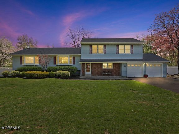 Welcome home to this spacious split level, 4 bedroom home with an inground pool! Nestled in a quiet community, this home is in a spectacular location with the property backing up to the protected areas of Durand Park and Green Acres. Large front property, wide driveway with 2 car garage. The entrance of the home has an inviting, covered porch area. Entry level features a 4th bedroom, full bath and large laundry/mud room with access to pool and garage. Main level features hardwood flooring, a bright and airy kitchen, tons of natural light and large sliders in both the family and dining room. The family room has vaulted ceilings, skylights and a cozy wood-burning stove. On the second level, enter the master suite with walk-in closet and a large updated bathroom, with soaking tub and shower. There are an additional two spacious bedrooms upstairs as well. Beautiful laminate flooring in all four bedrooms. Large basement for tons of storage. Enormous two-tiered deck leading to grassy area and a 25,0000 gallon inground pool. Pool has a solar cover. Matching awnings on both levels, this backyard is perfect for relaxing and hosting guests. Excellent Freehold school system. Close to shopping, restaurants, less than a 30 min drive to New Jersey beaches. Make this beautiful home yours today!