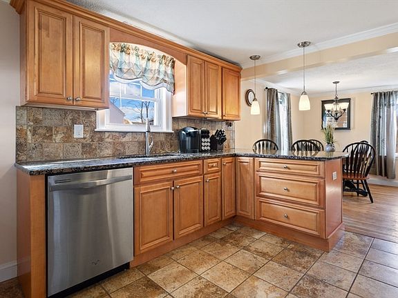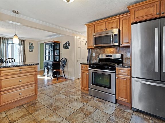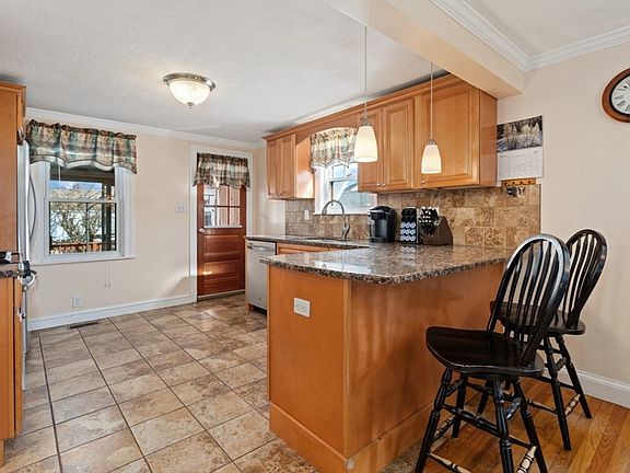 Nothing to do but move in!!! 3 bed cape with newer open concept kitchen/dining room that includes stainless appliances, granite counters, breakfast bar, ceramic tile floor with matching backsplash. 1st floor also has separate living room, dining room and bedroom. Red oak flooring, crown molding, sun room w/skylight leads to great size deck overlooking a nice sized, flat lot. Lower level has family-room with berber carpet and an additional space for storage and a workshop. Gas heating system. The backyard includes a storage shed and is fenced-in for all the pets! A must see property. Easy highway access and close to shopping, entertainment, and all the offerings of the Northshore. 15 minute drive to Boston.