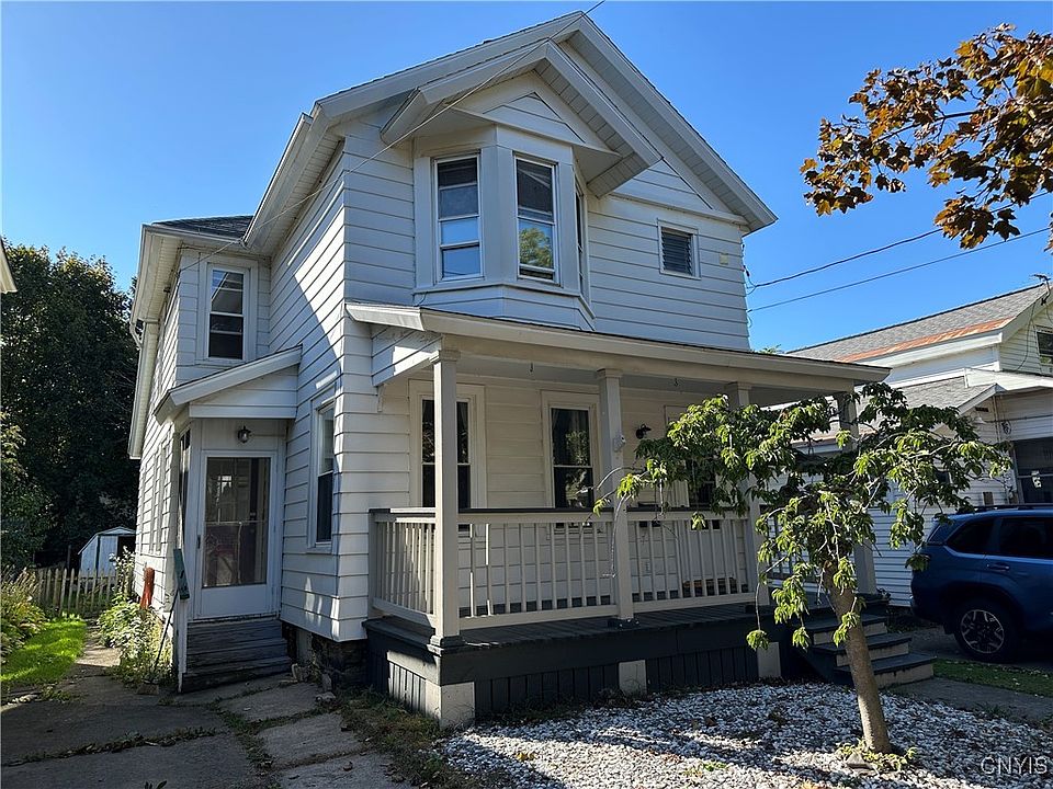 City Colonial home in efficient location. A short walk to Fort Ontario to view those world class sunsets & so much history. Many activities can be enjoyed at the baseball fields, swimming pool & ice rink. Nice layout on the first floor including living room, a dining room that would also be an excellent home office area or second living area. First floor bedroom that's freshly painted, a blank canvas! Sunlight kitchen with so much room! Eating area separated by island. Lots of cabinets for storage and hooks for staying organized. Upstairs you will find a two large bedrooms, one smaller with attic access. Updated full bath.