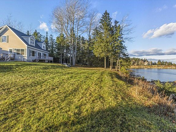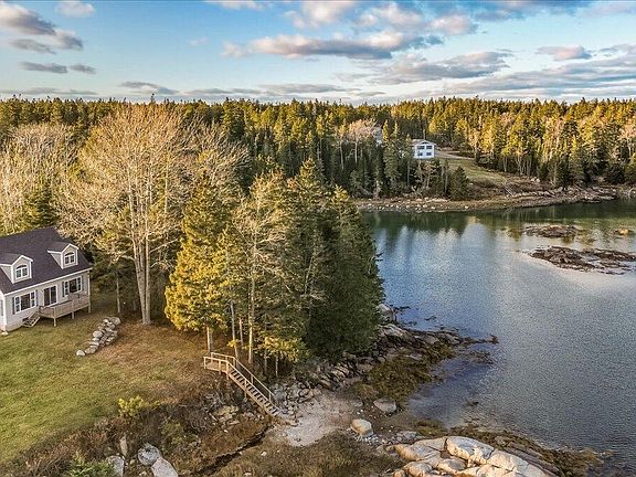 This well-maintained cape on Deer Isle's eastern shore, and Jericho Bay, offers broad views of ocean and inner islands, with the mountains of Acadia National Park in the distance. Built in 2004, the two-story home has been very lightly used for summers only and offers a wonderful setting for year-round living or a vacation getaway. The nearly 1-acre lot features 500+ feet of water frontage bordered by a combination of trees and lawn for outdoor recreation and relaxation. Recently rebuilt stairs lead to a lovely beach with pink granite pebbles, sea grasses, and ledge, making it ideal for swimming and launching kayaks or other small craft. The full, dry basement provides ample space for storage, a workshop, etc. A frost wall and pad are already in place for an addition, originally intended as an attached garage.