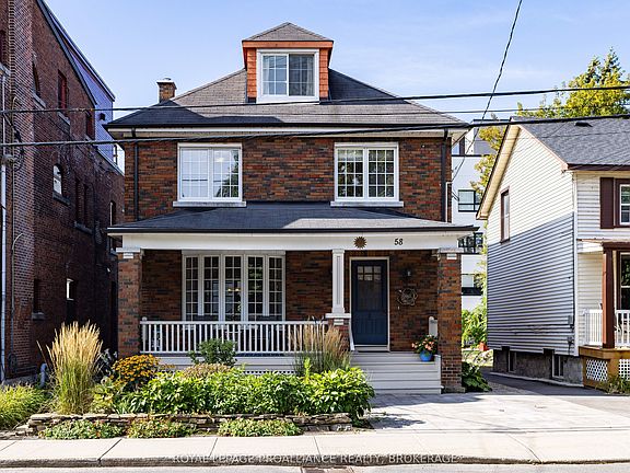 Kingston's downtown Sydenham Ward is lined with lovely townhomes. Detached residences, though, especially sizeable and extensively renovated examples, are in short supply, particularly along the quiet, close-to-the-water bottom end of Earl St. If you're in the market for such a thing, it can feel as if you're waiting for a comet that blazes past only once in a generation. Even with that introduction, 58 Earl St is something special. Walkable in minutes to the downtown core and to the water, the hospitals, City Park and the University, the location feels as perfect as a front-row seat. With large principal rooms and high ceilings, excellent natural light and grown-up perennial gardens front and back, it's a winning ticket, a dream made from perfect angles in double-brick and immaculate plaster. The main floor, with its formal living and dining rooms, is pleasingly open thanks to a 2012 Mac Gervan renovation (the kitchen has in-floor heating!), and the home office addition gives onto an elevated deck and then those formal and wild gardens. The primary bedroom suite at the rear of the second floor is as grand as any in the city, with sitting areas and a six-piece ensuite so generous you'll want to plan in advance your route back to bed. Two more bedrooms are spread across the front of this level and both have spacious closets. The third floor - completely finished with hardwood floors and ample knee-wall storage - would make for a splendid fourth bedroom if it wasnt so well-suited to a studio, or teenagers hideaway. The auxiliary heat pump (2020) is connected to three heads over two floors and keeps things both warm and cool, but the main heat source is the gas boiler and the splendid, stylish radiators. The parking pad was resurfaced in 2022, plenty of the windows and doors have been replaced as well, and the basement is dry and insulated. The house needs not a darned thing, that's what I'm getting at, and offers everything you've been looking for.
