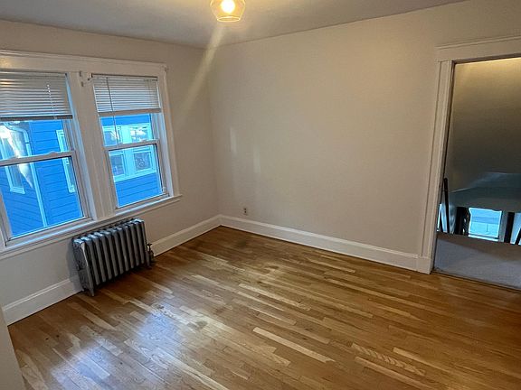 Second floor East Watertown apartment on quiet side street near Cambridge/Belmont line. Spacious living room has brick fireplace, and plenty of windows with views of the Boston skyline. Formal dining room with built-in and wide opening into the livingroom. Kitchen has new granite countertops, gas stove and plenty of cabinets. Two good size bedrooms centered by the tiled full bath with updated vanity. Bonus front room perfect for home office or guest bedroom. Plenty of storage in the attic and basement. In unit laundry for convenience and private back enclosed porch. 1 car garage parking and 1 off-street. Conveniently located between the 71 & 73 bus line. Available asap. First, Security and broker fee required (3 months total) Landlord pays for water/sewer Tenant pays gas, electric. Tenant responsible for snow removal.