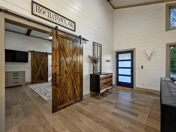 Welcome to Aspen, a luxurious cabin nestled in the heart of Broken Bow, offering the perfect blend of modern style and natural beauty. Imagine waking up to the fresh scent of pine trees, enjoying a relaxing soak in a hot tub with stunning views, or unwinding by a cozy fire pit under the stars. This cabin is designed to provide an ideal retreat for those seeking relaxation and rejuvenation, combining comfort and luxury in every detail. The spacious king bedroom is a sanctuary of comfort, featuring an ensuite bathroom with a soaking tub and a stand-up shower, ensuring privacy and convenience. The open-concept living area offers ample space, with beautiful wood floors, high ceilings, and large windows framing breathtaking views of the surrounding nature. The fully equipped kitchen boasts modern appliances, including an oversized fridge/freezer, dishwasher, and stove, making it easy to prepare gourmet meals. Enjoy dining indoors at the spacious table or take your meals outside to the expansive deck, where you'll find a BBQ grill, outdoor dining area, and a self-serve bar. The deck offers sweeping views of the pine trees and a peaceful atmosphere perfect for outdoor living. Outside, the cabin’s tranquil setting continues with a cozy fire pit, seating for four, and a covered gazebo-style hot tub, where you can unwind with a glass of wine while taking in the beautiful surroundings. The private patio, accessible from the living area or the bedroom, provides the perfect spot to relax and enjoy the natural beauty of Broken Bow. Conveniently located, this cabin is just a short drive from local restaurants, grocery stores, and attractions, offering the ideal balance of seclusion and accessibility for a truly unforgettable vacation experience. Whether you’re seeking relaxation or adventure, Aspen provides everything you need for a luxurious getaway.