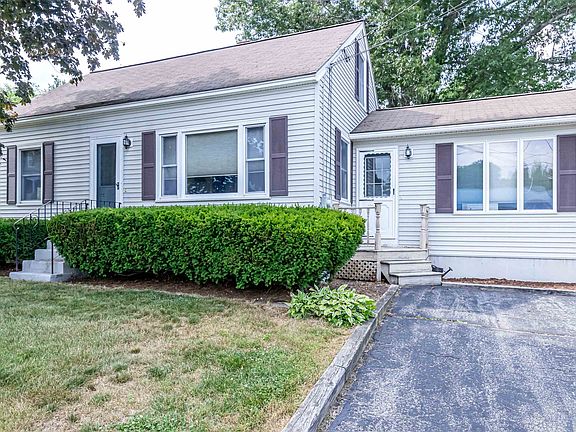 Welcome to this charming cape style home in Pinardville. The home is located in the great town of Goffstown with all of its amenities; shopping, quaint restaurants and school system. The water and sewer are from Manchester. A large great room with a vaulted ceiling, built-in bookcase with a gas fireplace, and a set of sliders to the deck is the first room that you enter from the side door which has a useful airlock entry. The kitchen has stainless appliances, a built-in breakfast bar, tile floor, and a pass through to the dining room. Enjoy entertaining and holiday meals in the dining room with a large picture window.There are two bedrooms on the first floor with a full bath that has been recently updated. The primary bedroom is on the second floor with a full dormer, wall to wall carpet, and a generous bathroom including tile floor, a step-in shower stall, and a large vanity as well as the large closet area. There is a finished family room/game room/office in the lower level, and plenty of storage including a cedar closet. The home has been well maintained and lovingly enjoyed by many generations. Make an appointment to view this home today.