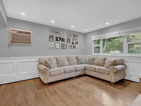 Welcome to this charming and spacious 4-bedroom, 2-bath Hi-Ranch located in the Eastport–South Manor School District. Perfectly situated on a generous lot, this home features beautiful landscaping, a brand-new fully fenced yard, and a 1-car attached garage with pull-down attic access for extra storage. Inside, enjoy two large living areas, a full stone fireplace with a custom mantle, and stylish chair rail and picture frame moldings throughout. The oak hardwood floors add warmth and character, while the modern eat-in kitchen offers granite countertops, stainless steel appliances, beautiful ceramic tile and abundant cabinetry, opening seamlessly to the dining area—perfect for entertaining. The lower level features a first-floor bedroom and full bathroom, along with versatile living space ideal for a guest suite, home office, or recreation room. Additional highlights include a shed for extra storage and a move-in ready design that blends comfort and style.
