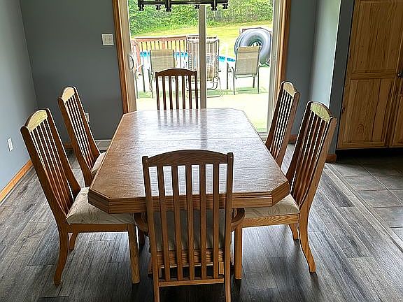 Single floor living area with full basement. Laundry on first floor. Two heat sources. 2 car garage. Pool. 10.13 acres of land.