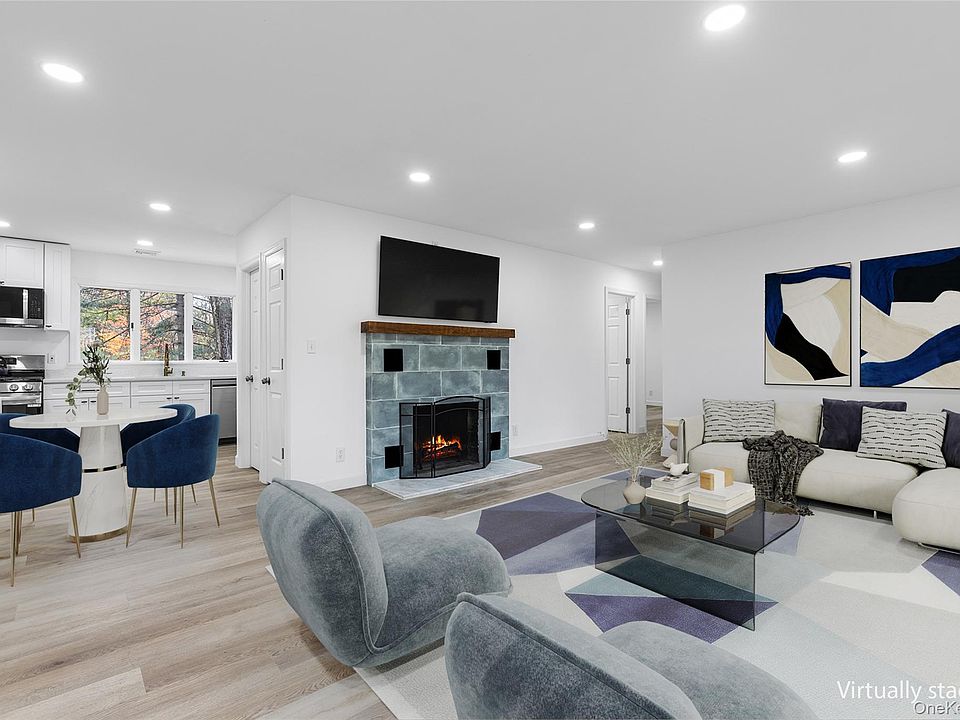 Welcome to 58 Gleneida Ridge, a completely renewed ranch home with finished lower level where every detail has been carefully updated for modern comfort and lasting quality. Recent improvements include new siding, roof, windows, flooring, plumbing, electrical, and a high-efficiency heat pump. The bright, open living spaces are centered around a living room with fireplace and a skylit dining area that fills the home with natural light. Step out onto the new deck overlooking a peaceful yard—perfect for relaxing or entertaining. The kitchen features new appliances, cabinets, and countertops. The basement has been finished to add a bedroom and the perfect space to entertain. With every surface refreshed and every system upgraded, this move-in ready home combines contemporary updates with everyday ease. A rare opportunity to enjoy the best of style, comfort, and care in a beautifully reimagined space.