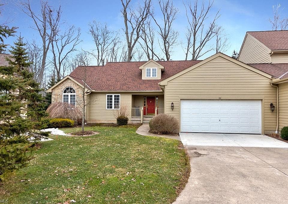 One owner RANCH condo in the Oaks of Aurora with beautiful wooded & water views is ready for it's second owner! All one floor living with a FULL (2298 sq. ft) walk-out basement! Covered front porch leads to the foyer where your attention is directed through the living room to the wall of windows overlooking the wooded backdrop! Spacious living room with gas fireplace flows into the eat in kitchen with peninsula & all appliances included! Dining room is nearby with pillar accents. Bedrooms 2 & 3 are separated by a hallway full bathroom. Bedroom 3 has sliding doors out to the rear deck! Master suite features a walk-in closet and very spacious master bathroom! Master bath includes a dual sink vanity with makeup area, soaking tub & walk-in shower! Full finished walk-out lower level is plumbed for a full bathroom & unfinished for your preferred touches! Laundry room includes washer & dryer, folding counter, wash tub & access to the garage! This condo is surrounded by mature landscaping & creek providing a very peaceful setting! Enjoy the quiet neighborhood near the heart of Aurora along with major commuting roads to Akron, Cleveland, Youngstown & everything in between! New roof in 2017 & HOA is fully funded (no assessments!). Seller offering incentives to the next owner- contact agent for details!