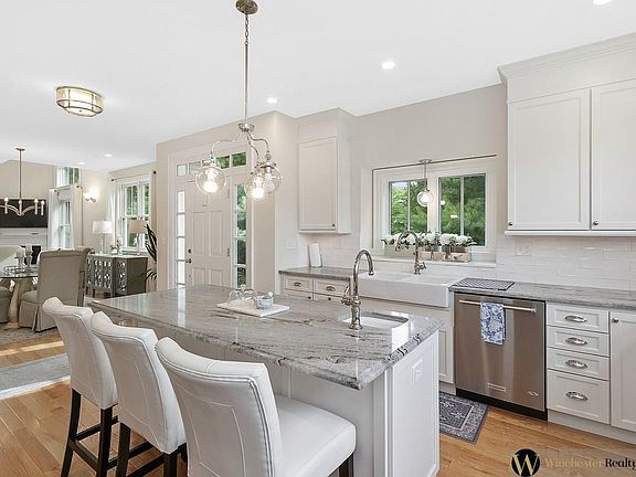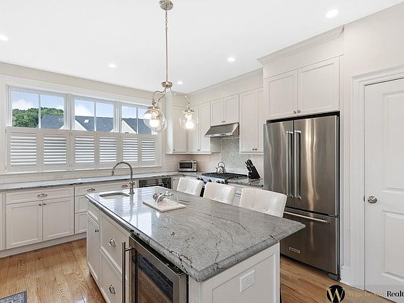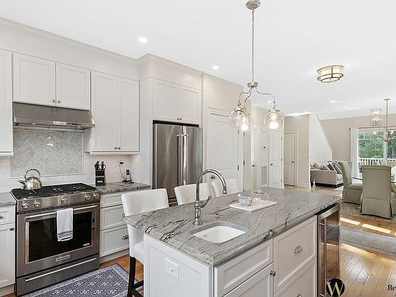 Luxury Johnson Woods end unit. Open floor plan, stunning upgraded kitchen, high-end quartz counters, stainless appliances, and storage galore! Enormous island with plenty of seating plus separate formal dining area. Airy vaulted ceilings, fireplace, and lots of windows in the living room. Sliders open to private deck ideal for memorable three-season entertaining. The first-floor master overlooks private green space through expansive widows. Spa like bath, generous closets round out this wonderful master suite. Laundry with full sized W/D offers convenient one level living. The second-floor master suite offers fireplace and all the closet space you dream of. Marbled tile shower double vanity. The fully finished walkout basement offers flexible opportunities to be used as an additional living room, playroom, craft space or guest bedroom. A ¾ bath and additional ample storage area. A private attached two car garage. Offers due Friday 6 pm. Shown by appointment only.
