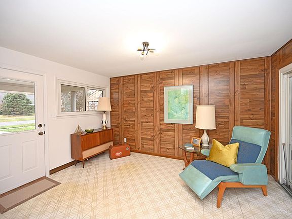 Mid-Century Modern Chic Ranch In Greenhills, A National Historic District! Functional & Stylish Move-in Ready w/Spacious Fin. Living Area including L/L Rec. Area w/Bar, Decor Fpl. & updated flooring. New Refin. Hardwood, Int. Paint, Lighting, Hall Bath Tub Re-glaze, Kit. Tile Backsplash +Hardware on Classic Wood Cabs. Open-Light filled Living Rm. Area w/Fireplace (not warranted), Dining Rm.w/Bay-Window adj. to Kitchen & Bonus Rm. Sitting/Den/Breakfast Area- w/ Walk-out to Enclosed Porch, Deck & Fenced yd w/Shed. Primary "En-suite" w/2 closets, 2 additional bedrms & Bath, Storage galore, Sidewalk Walkability- just blocks to W.Woods Primary, Min. to Winton Woods Park w/unsurpassed amenities, Major Highways, Shopping & Dining. A true Value in Space, Location, & Style!