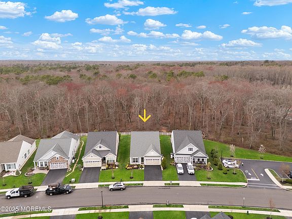 Welcome to the Monterey Loft at Four Seasons at Monmouth Woods! This spectacular home is nestled on a serene, wooded lot, offering a perfect blend of modern luxury and natural beauty. With 3 bedrooms and 3 baths, this airy and elegant layout features wide-plank wood flooring and an abundance of natural light. The Gourmet Kitchen boasts 42'' cherry wood cabinetry, granite countertops, and a seamless flow into the Great Room, where a two-story cathedral ceiling and picturesque wooded views create a stunning centerpiece. The Dining Room, accented with crown molding and chair rails, is ideal for gatherings, while the Master Suite offers a spa-like retreat with granite double sinks, cherry cabinetry, and a frameless shower. A Second Bedroom and full Bath provide comfort for overnight guests, while a dedicated office offers a quiet workspace. Upstairs, a spacious Loft features a Den, a Third Bedroom with its own Bath and walk-in closet, plus additional storage. Step outside to a private paver patio, perfect for enjoying your morning coffee while relaxing in the peaceful tree-lined surroundings. Additional highlights include a whole-house generator for added convenience and security. As a resident, you'll enjoy access to a vibrant clubhouse featuring a fitness center, billiards room, event space, card room, and library. Outdoor amenities include a pool, pickleball and tennis courts, walking trails, and bocce. The Monterey Loft offers comfort, style, and resort-style living in the highly desirable Four Seasons at Monmouth Woodsdon't miss this incredible opportunity!