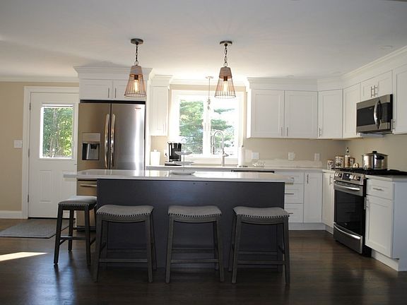 Better than new! This custom Cape style home has been completely renovated from the ground up and offers over 1,800 square feet of living space with three bedrooms and one and a half bathrooms. The first floor features a large kitchen with granite counter tops, top of the line cabinets, stainless steel appliances, a large kitchen island, a fireplaced living room that could be used as a formal dining room, a great sized family room, and a half bathroom with laundry hook ups. The second level features a large master bedroom with walk in closet, two additional bedrooms, and a full bathroom with a double vanity and closet. Other features include hardwood flooring throughout, new windows, new roof, new siding, new heating and central a/c systems, new septic system, updated electrical system, central vac, a large rear deck with gas line for your grill, storage shed, and a great size lot.GROUP SHOWING TUESDAY SEPTEMBER 1st CANCELED. OFFER ACCEPTED