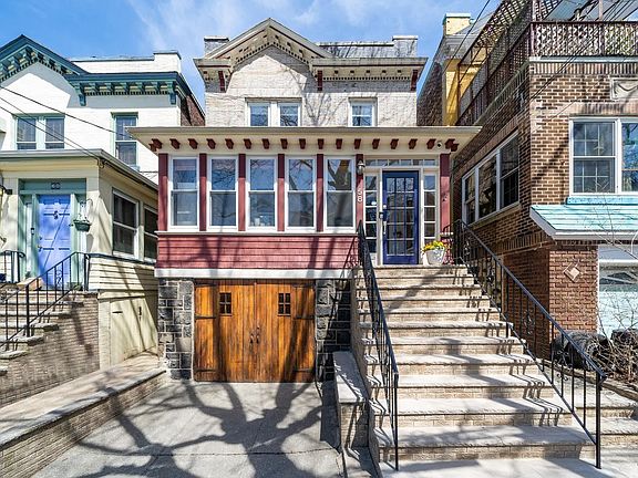 Lovingly restored solid brick, wood and bluestone Arts and Crafts historic home with garage and driveway parking right off Blvd East! This tastefully renovated vintage home is rich with original details including Chestnut woodwork, ribbon inlay floors and art nouveau stained glass! Parlor floor includes a spacious new kitchen with Black Galaxy granite, charcoal slate floors and custom stainless steel fan and appliances. New 1/2 bath off the kitchen and a welcoming re-built sun porch. Lofty living and dining room with french doors open to an expansive deck with beautiful landscaped garden and fenced yard. 2nd floor includes 3 bedrooms, new bath with soaking tub and double vanity. Reproduction fixtures and ceiling fans thru-out and custom walk-in closet. Garden level completely redone with sparkling new subway tile full bath and distressed porcelain tile flooring thru-out.