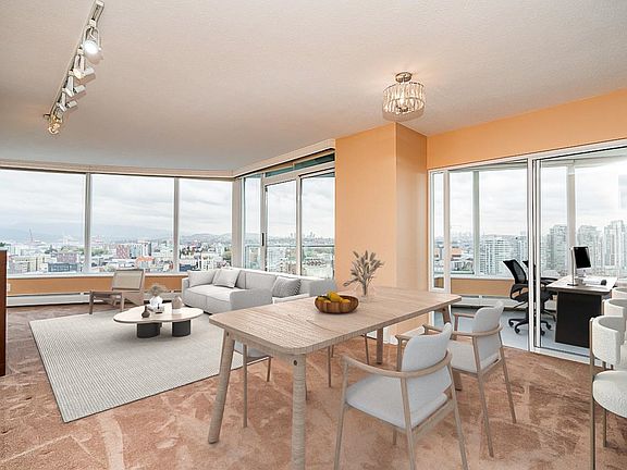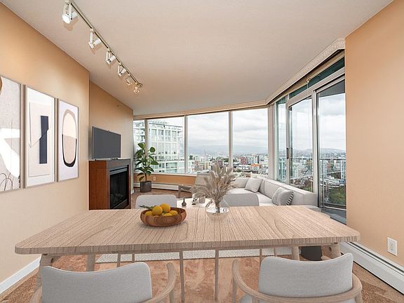 Spectacular city, water & mountain VIEWS from this 2 BED + DEN home at the Firenze! This spacious residence is bright and open with generous living areas and a versatile den perfect for a home office or guest space, this suite offers incredible potential to personalize. Airbnb-friendly building with professional concierge and rare on-site caretaker - ideal for investors or snowbirds. Steps to SkyTrain, Seawall, Costco, T&T, Rogers Arena, Chinatown and Gastown. Enjoy resort-style amenities: indoor pool, hot tub, sauna, gym, tranquil gardens, and more. 1 parking & 1 bike locker included.
