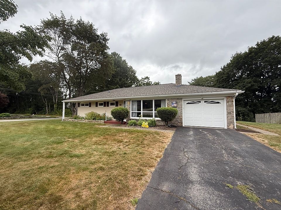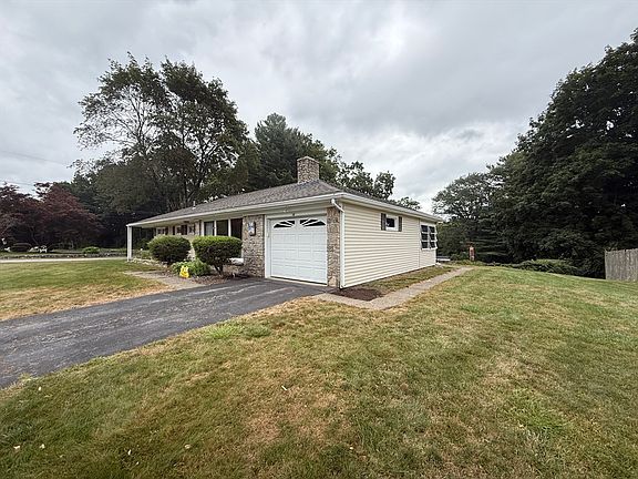 This Ranch style home, located in a very convenient location of Dudley, is just what you have been looking for. Home has been lovingly maintained and well cared for by the single owner family since it was built in 1965! Home features 3 generously sized bedrooms along with a primary bedroom suite with an updated 1/2 bathroom. All bedrooms have hardwood floors along with double closets. The 3rd bedroom has had the laundry relocated to the main level for convenience, but can easily be moved back downstairs where the connections remain. The living room has hardwood floors along with a wood burning fireplace. The updated kitchen features tile floors, newer cabinets and counters, and an eating space. The main bath is good sized w/double sinks. Rear sunroom is heated and leads to the rear patio with water views! A one car garage, roof & oil tank both under 6 months old, updated boiler, along with a dry, neat & clean basement. Rear shed for storage as well. Active 8/20 for showings
