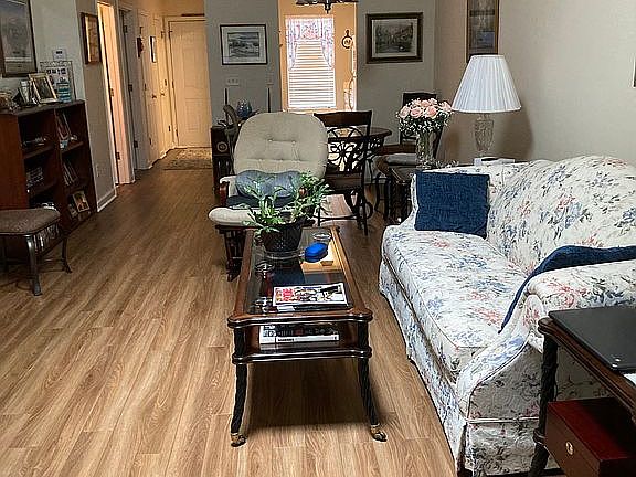 Enjoy friendly neighbors in a quiet neighborhood that offers the ideal blend of tranquility and accessibility in a thoughtfully crafted 1118 square feet one-story stucco and vinyl townhouse with a three-year old roof and AC unit. At first glance you’ll be impressed with its colorful beautiful landscaping. The interior is well-maintained and updated throughout, offering a large combined living/dining room with an electric fireplace and ceiling fan/lights; a kitchen with abundant cabinets and a new dishwasher and garbage disposal, as well as a pantry with built-in shelving The two bedrooms have ensuite full baths and large closets, and there’s a less than three-year-old washer and dryer in the laundry room. The backyard is perfect for enjoying your morning coffee, entertaining friends and family or unwinding after a busy day under a large, covered patio with custom blinds next to a lush green lawn with mature shrubbery and plantings. The attached organized storage shed easily holds a lawn mower and gardening tools.