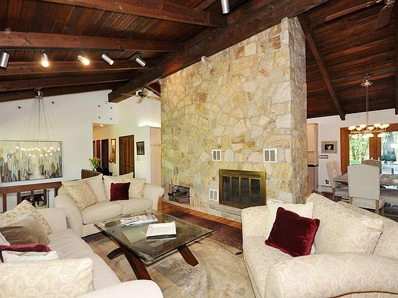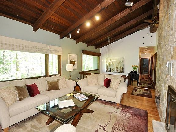 - Liv Dscrp: Fireplace, Flooring - Hardwood, Ceiling - Cathedral, French Doors, Ceiling - Beamed, Window(s) - Picture