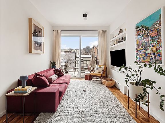This fully renovated, 2-bed, 1.5-bath duplex on the border of Clinton Hill and Bed-Stuy offers a sun-drenched space with open views and a south-facing private terrace.