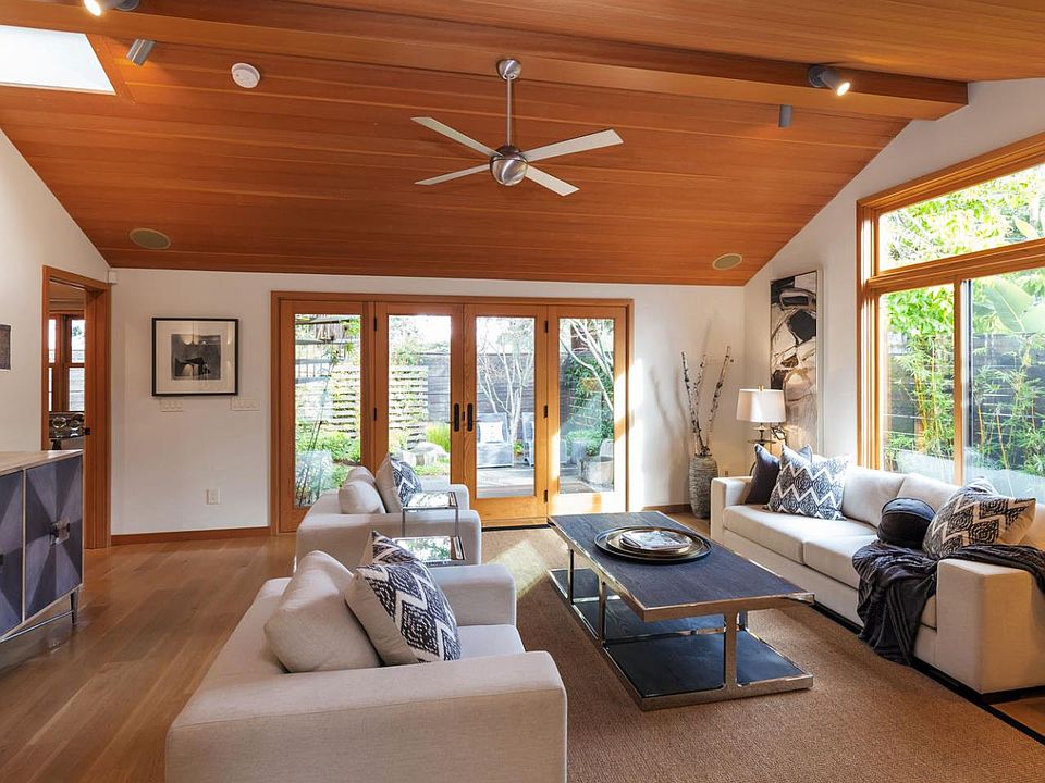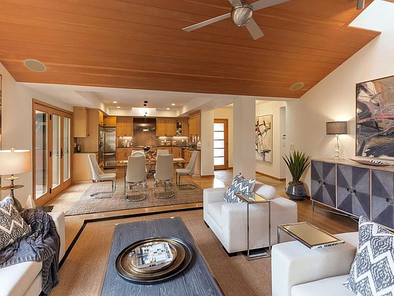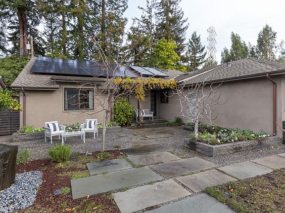 Gorgeous remodeled home with clean Scandinavian-style openness. Welcoming fenced front yard is an edible garden with large raised vegetable beds and fruit trees. Open-concept floor plan for living, dining and fabulous chefs kitchen. Living room with cathedral ceiling clad in beautiful resawn cedar, two skylights, and wide French doors to deck. Formal, but open, dining area with skylight and French door to deck in a bamboo garden. Fabulous kitchen w/ custom cabinetry topped in granite slab, glass tile backsplashes, center island with seating, and stainless steel appliances. Master suite with walk-in closet, wall of windows, French door to a rear patio and gardens, and remodeled en suite bathroom. Solar panels. Enchanting & private rear yard with Japanese maples, bamboo garden & a rooftop deck. Landscape design by award-winning modern landscape designer Bernard Trainer. Convenient gate to Landels Park & Elem. Just minutes to shopping & dining on Castro Street.