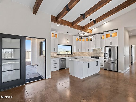 New construction luxury retreat on 4.76 acres! A sweeping circular driveway leads to a jaw-dropping entry, concrete floors, soaring cathedral ceilings with exposed wood beams, and luxe stacked kitchen cabinetry with dimmable lighting and Quartz Della Terra Biancone countertops. Enjoy a full appliance package, exquisite great room, split floor plan, and a spa-worthy soaking tub in the private primary suite. Lounge in the dreamy courtyard off the primary suite, where morning coffee and moonlit moments come to life. Host unforgettable gatherings on the rear patio, framed by epic mountain views and sunsets that feel straight out of a painting. Every space whispers relaxation, connection, and luxury--ready to welcome you home.