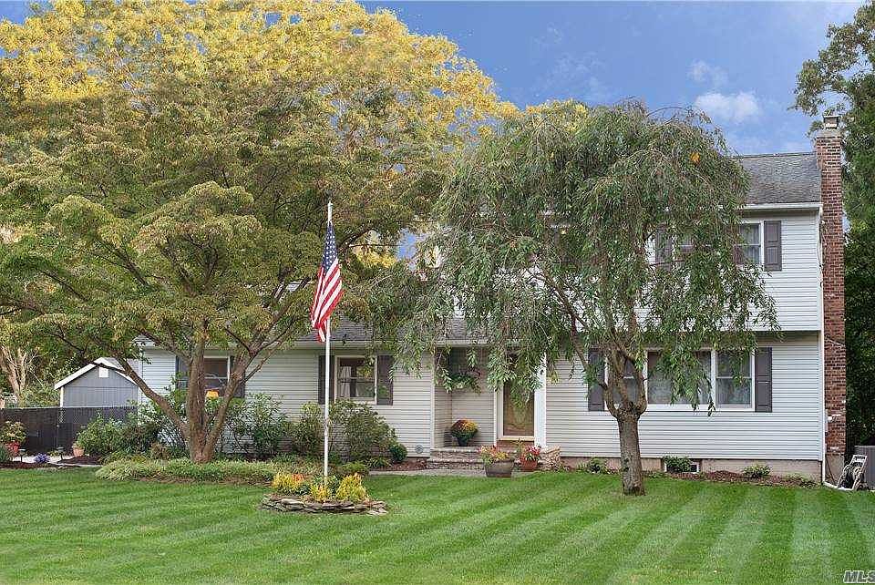 Charming Shoreham Colonial with ALL big ticket items completed for you from the ground up! Covered front porch entry leads to Living Room with brick faced fireplace featuring wood burning stove insert, Updated kitchen with stainless appliances including NEW propane gas range, Formal Dining Room, Den with window wrapped walls & sliders to deck and private fenced yard. Wood floors on both the 1st & 2nd floors. 3 bedrooms, including Master Bedroom with access to updated hall bath. Finished basement with rec rom, storage & utilities. Fenced, level yard W above ground pool w updated mechanicals, and deck which is ideal space for entertaining. Extended parking in driveway. Owned solar panels with no balance due! Other Updates include Washer/Dryer 2019/2020, Oil tank 2018, Boiler 2017, Bath 2017, CAC 2016, Solar installed 2014, Cesspool 2010, Roof 2008. Close to beaches, parks, shopping and vineyards. STAR Savings approx $1096 per yr