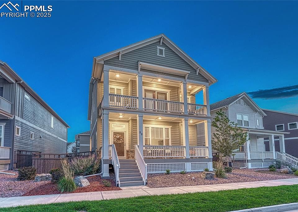 Gorgeous Two-Story Home | New LVP Main-Level/Luxury Carpet Upstairs | Oversized Primary Suite | Finished Basement! Picturesquely situated in the quiet neighborhood of Gold Hill Mesa, this 4BR/3.5BA, 3,500+sqft residence seamlessly incorporates thoughtful design choices and a fabulous midcentury flair. Boasting a brand-new roof, the move-in ready home enchants further with a covered front porch (Trex), rustic exterior stacked stone accents, and beautiful landscaping. Upon entering the meticulously-maintained home, you immediately notice the voluminous vibe with high 9’ ceilings, gorgeous NEW LVP floors, designer-inspired color palette, updated light fixtures, main-level half-bathroom, and an elegant home office with French doors. Entertain with immense ease in the open concept gourmet kitchen, which mesmerizes with stainless-steel appliances, stunning 42” custom cabinetry, quartz countertops, fashionable textured backsplash, gas stove, Samsung refrigerator, garbage disposal, coffee bar, built-in microwave, walk-in pantry, and a breakfast bar island. Guests may easily relax in the adjoining living area, or enjoy a few appetizers in the stylish dining area. Explore the upper-level with luxury carpet to discover a mod loft for easy relaxation. Oversized for maximum comfort, the primary bedroom dazzles with two walk-in closets, balcony access boasting city and Garden of the Gods views, and a luxurious ensuite with a custom step-in rain shower, quartz countertops, and dual sinks. Finally, the finished basement impresses with a large family room, custom “Chicago-style” built-in wet bar, spacious bedroom, full bathroom, and a storage room. Other features: 2-car garage with high ceilings, laundry room, radon mitigation system, fenced-in side yard with turf, covered patio, quick access to Fort Carson, Air Force Academy, Shriever, and Peterson, close to shopping, hospitals, and entertainment, near I-25 for easy commutes to Denver and Downtown Colorado Springs, and more!