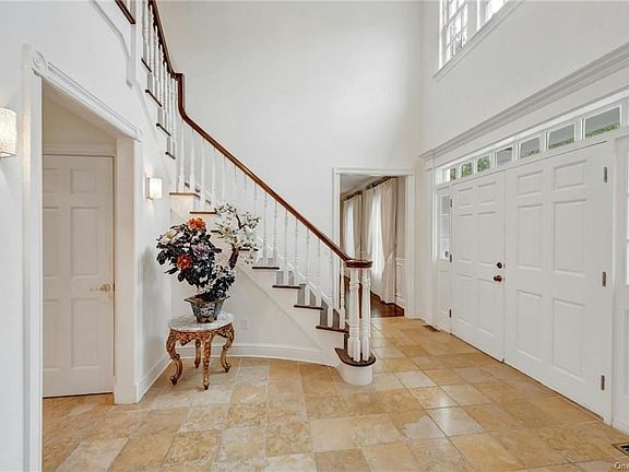 Perched high on a private oasis, this sleek and sparkling, mint condition Georgian Colonial is surrounded by lush greenery and mature trees, ensuring tranquility. A dramatic two-story entry awaits, leading to a modern living room that exudes elegance and gracious living. The expansive music room, with its vaulted ceiling and palladium window, is perfectly proportioned for large-scale entertainment. The gourmet kitchen boasts cabinetry accented with satin nickel hardware, custom granite countertops, and stainless steel appliances. A large center island offers ample surface space for food prep and includes an integrated breakfast room for casual dining. The family room provides a relaxing atmosphere, perfect for enjoying sun-filled days or cozying up by the fireplace with a good book on chilly evenings. The upper level features a stunning primary suite that serves as a pampering retreat, complete with a fireplace, luxury spa bath, and a spacious, outfitted walk-in closet. This level also includes a grand bonus room and generously sized bedrooms to meet all your needs. The lower level, with its high ceilings, offers creative possibilities. Enjoy spectacular sunrises and sunsets on this breathtaking property, providing an unparalleled backdrop for outdoor entertaining. Unleash your inner athlete in this expansive backyard! Whether it's baseball or soccer, this level space is the ultimate playground for any sports game you choose. Grab your bat, set up the soccer nets, and get ready for endless fun and competition. Quintessentially private on a cul-de-sac, yet close to town and schools, this home is a true oasis and a rare find. Move right in!