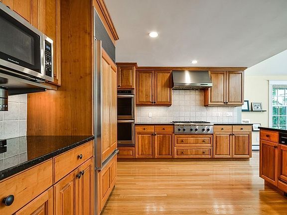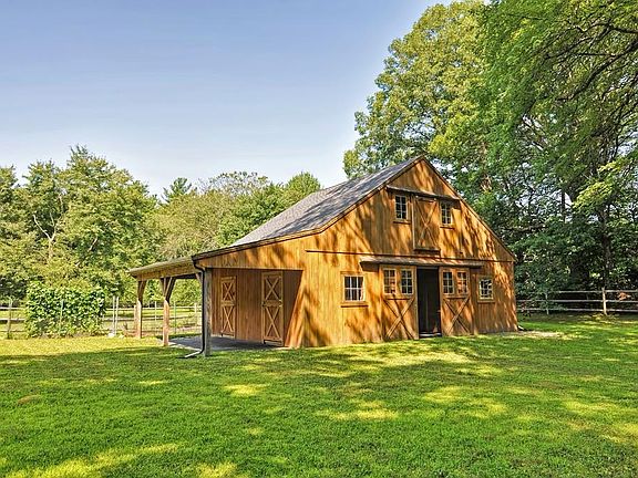 Beautifully maintained 5-bedroom Colonial on lovely 2+ acre lot with unique, newer post & beam 3-stall barn. This kitchen addition features an expanded eating/sitting area multiple windows & French doors to the private bluestone terrace with stone walls and perennial gardens overlooking the barn & yard/pasture spaces. Stainless appliances, gas cooking, granite counters, wet bar & cherry cabinetry enhance the chef's ktichen. Enjoy the open floor plan, wood floors throughout both levels, 1st floor home office, and a step down family room with brick fireplace and built-in bookshelves.The home has a finished lower level with bonus room and half bath. A long list of improvements includes central air, newer natural gas heat system, new alarm system, new windows, shelving units, and updated lighting to name a few. Room for expansion on 2nd floor. This is a lovingly maintained home with much to offer.Bring your horses to nearby trails or use the spacious barn for entertaining and storage!
