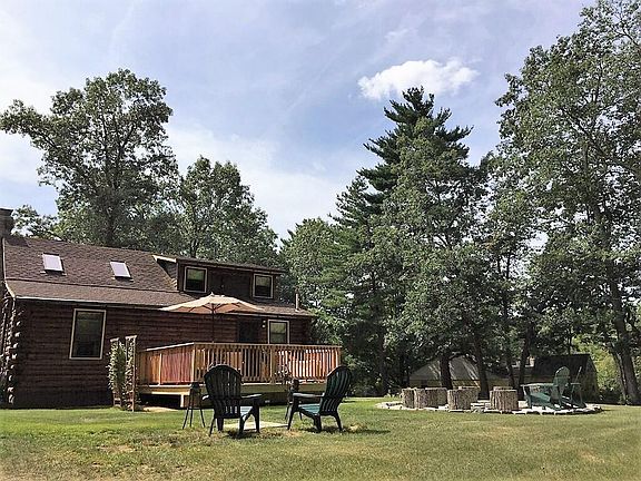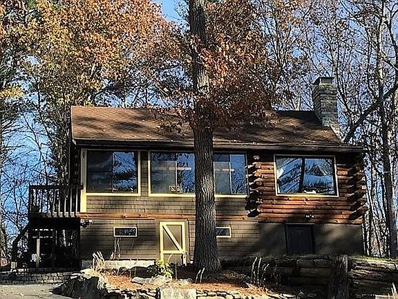 Walk right in and fall in LOVE! One of a kind Log Home with beautiful water views! nestled up on a hill with large level yard that abuts wooded area, All the charm and character of living in the woods but conveniently located to all amenities. 3 bedroom home with extra room downstairs that could possibly be used as a bedroom-currently being used as an exercise area, living room has cathedral ceiling & skylights with large stone fireplace for those chilly New England nights, kitchen is nicely updated with granite counter tops and stainless steel appliances, eat in kitchen with dining area big enough for a large table, sit out on your cozy enclosed front porch and enjoy the view in the winter or relax outdoors on your back deck or in front of the fire pit in the warmer weather! Agent related. All offers must be received by Saturday 12:00 noon.