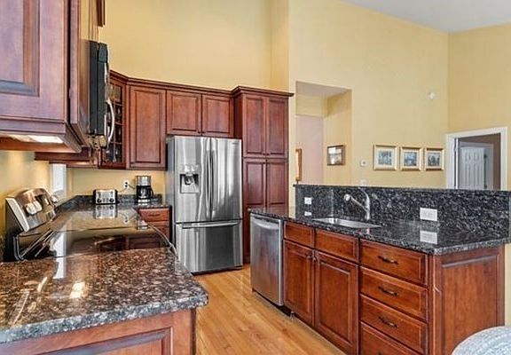 - Features: Vaulted Ceiling(s), Dining Area, Countertops - Stone/Granite/Solid, Kitchen Island, Open Floorplan, Stainless Steel Appliances