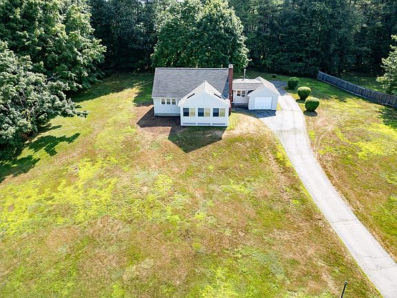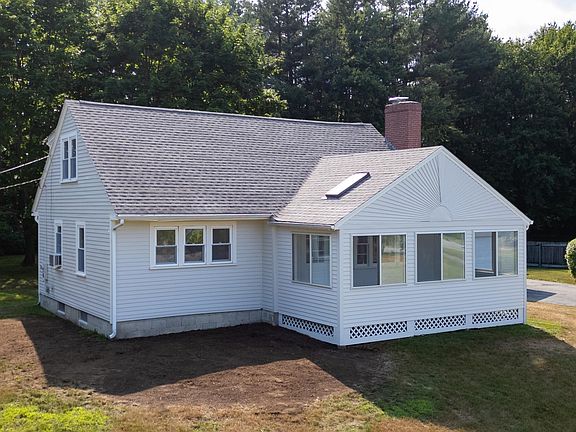 Set high on a knoll, this 4 bedroom cape has sweeping views! Relax on the 12 x 22, 3 season porch and enjoy! With 4 good size bedrooms, 2 on the first floor and 2 upstairs, this home has a flexible floor plan. Choose your primary bedroom on the first or second floor. Use one bedroom as an office, nursery, guest room, or create a fabulous suite!. First floor refinished oak floors, and freshly painted rooms give this home a spacious and modern feel. Where will you be? In the cozy den with wood stove and new carpet, the large living room with hardwood floors and fireplace, or the 3 season porch with 3 walls of windows and skylights? So many places to gather and entertain, and the 1.72 acre lot gives many opportunities to expand living space, outdoor space and garage space. Kitchen and baths may need updating, but functional until you decide what you want to do. Exterior house just painted!! Dry basement. Lots of parking! Bring the RV, boat or camper. Close to highways and the beach! Showings by Appointment only, starting Sat. July 20.