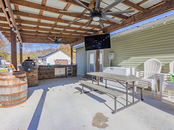 Welcome to your dream home! This beautifully updated 3-bedroom, 2-bath ranch offers 1,555 Sq Ft of stylish living space on 1.4 serene acres - perfectly combining modern comfort with peaceful country living. Step inside to an inviting open-concept living area featuring warm flooring, neutral tones, and plenty of natural light. The spacious kitchen flows seamlessly into the living and dining spaces - ideal for entertaining or large gatherings. The primary suite features a bold accent wall, barn-style sliding door, and a spa-inspired ensuite with a double vanity and custom finishes. Two additional bedrooms provide space for guests, or a home office. Outdoors, enjoy your own private retreat! The backyard boasts a covered outdoor kitchen, built-in grill area, and fire pit with swing seating-perfect for relaxing evenings or hosting friends. With a charming front porch, beautiful landscaping, and a large yard offering room to play, garden, or expand - this property truly has it all.