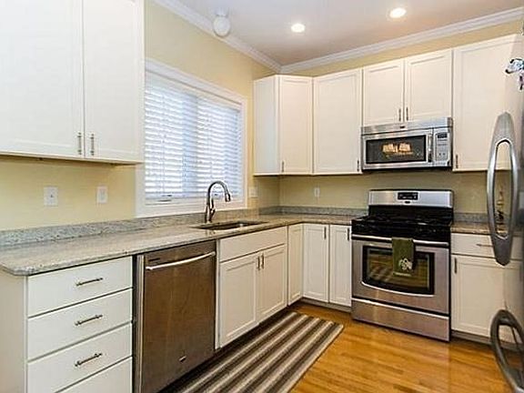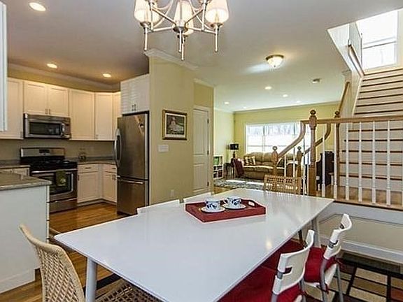 A 3-bedroom, 2-bath townhouse in West Newton Hill offering exceptional commuter convenience minutes to I-90 and I-95, and walking distance to the commuter rail and express buses to Boston. Features include high ceilings, hardwood floors, an open layout, and a modern kitchen with granite counters and stainless steel appliances. The bright dining area opens to a private deck overlooking the side yard. A finished basement provides additional living space. One garage space and an additional driveway spot are included. Walking distance to Pierce School and major transit options.