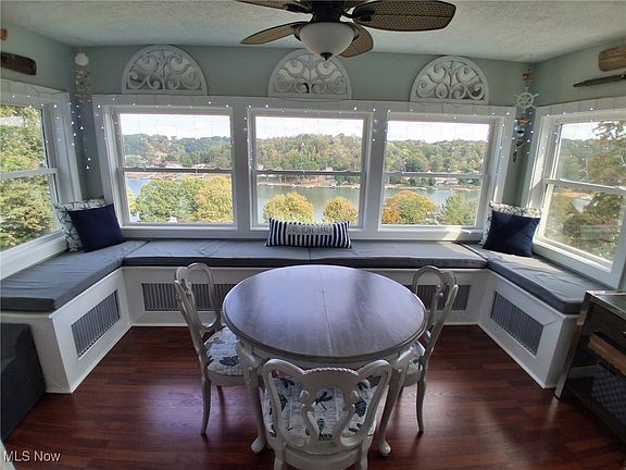 Amazing panoramic lake views from front and back of home. This home is one of only a handful of homes with a double view. Situated on 2 lots, this home also has an extra garage as well as ample flat parking for multiple vehicles.. Completely updated on the outside, roof (2020), siding, fascia, soffits and gutters (2022). Additional garage (2022) and new grinder pump (2023). Multiple outdoor entertaining areas in the front and back of home. Attached garage is finished with heat and new lighting (2023). As you step inside, you are met with light, airy rooms including a 10-foot ceiling in the living room. Extensive updates inside the home including new Pella windows (2020), kitchen cabinets, granite countertops, flooring, paint (2020), new central air and water tank (2020), new High-efficiency furnace (2025). Perfect for entertaining with its large open concept living room area and attached 4 season room overlooking the lake. 14 x 14 all weather pergola with heaters, fan and clear drop curtains over looking the lake. Lake Mohawk is a 500-acre private lake with unlimited horsepower, 3 beaches, tennis, pickleball courts, 9-hole golf course as well as many clubs to join. Truly a paradise! Immaculate move-in condition!