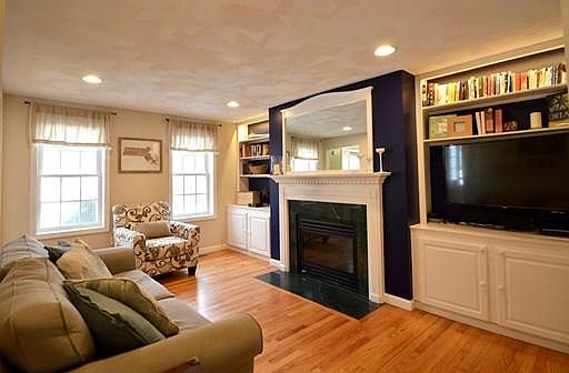 Lovely Colonial on .3 acres. HARDWOOD floors throughout 1st & 2nd floors. 3 bedrooms & 2.5 bathrooms. Lovely spacious MASTER SUITE. Living room has a GAS FIREPLACE & BUILT-IN CABINETS, OPEN CONCEPT first floor with kitchen, sunny breakfast nook and dining room. Sliders to a deck and a private back yard. Built-in 1st floor laundry. In addition this home also has room for expansion with a full WALK-OUT BASEMENT and a BONUS 3rd floor walk-up finished attic with full sized windows, ideal for a Family Room and Home Office. MINIMIZE YOUR COMMUTE and maximize your free time! Close to Routes 3 and 4 and 35 minutes to Boston. Live in the city AND enjoy nature as you are within walking distance to the Greenough Lands conservation area.